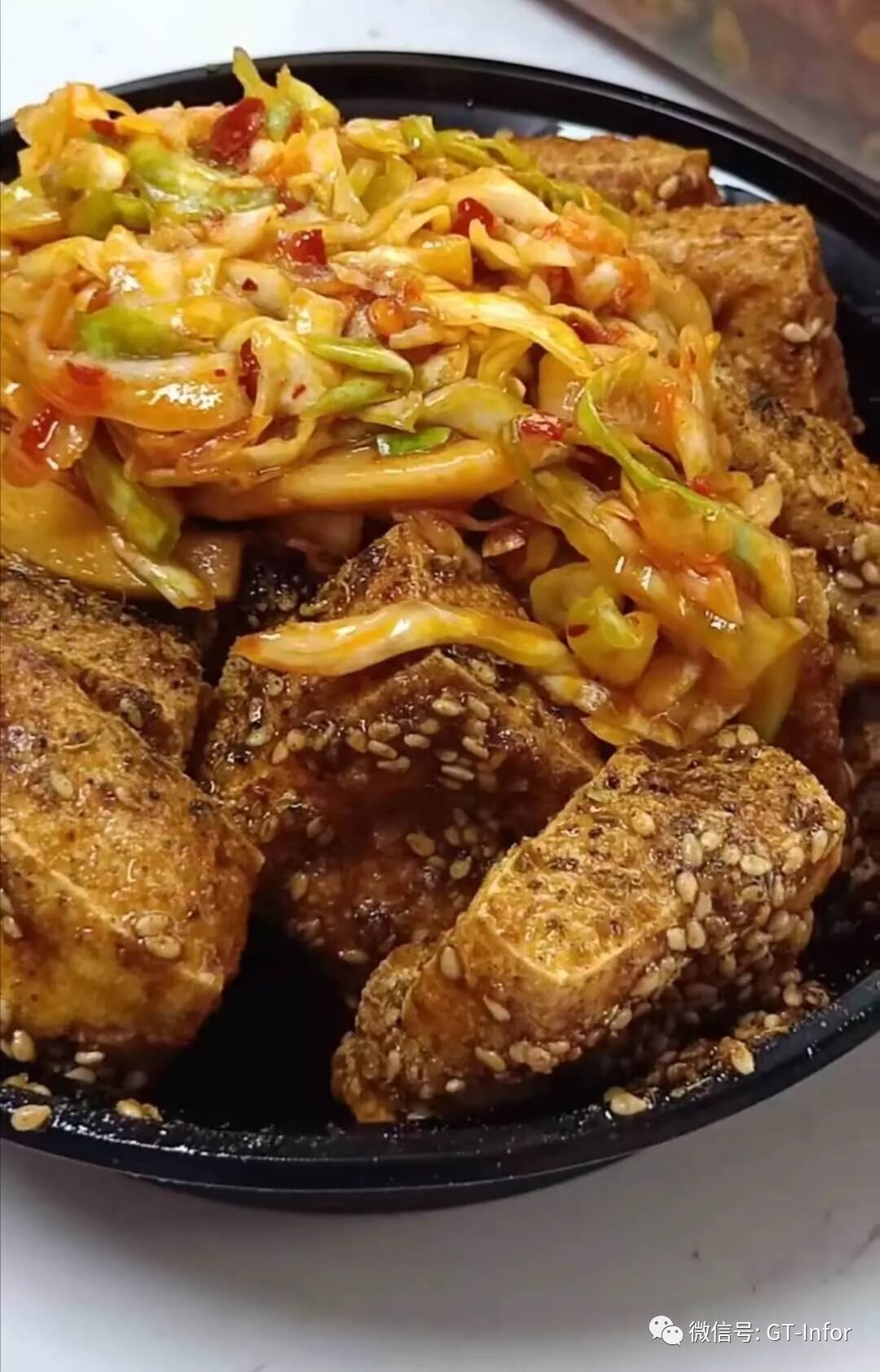 端上一碗外表金黄,外酥里嫩的臭豆腐配上秘制酱料,秘制泡菜,真是让人欲罢不能,回味无穷。